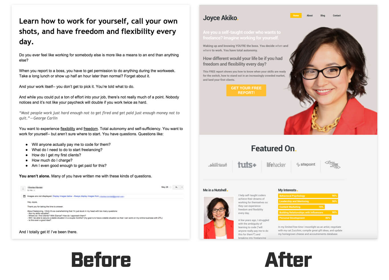 Evolution of a sales page PDF — See the before and after and see how we transform average copy into great copy.