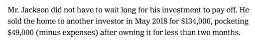 “Minus expenses.” LOL. Given that “expenses” can run over 10% of a house’s selling price, that’s like me saying, “I really enjoyed this trip to the Grand Canyon! All except for the part where my son fell off a cliff and died. Anyway, it was fun!”